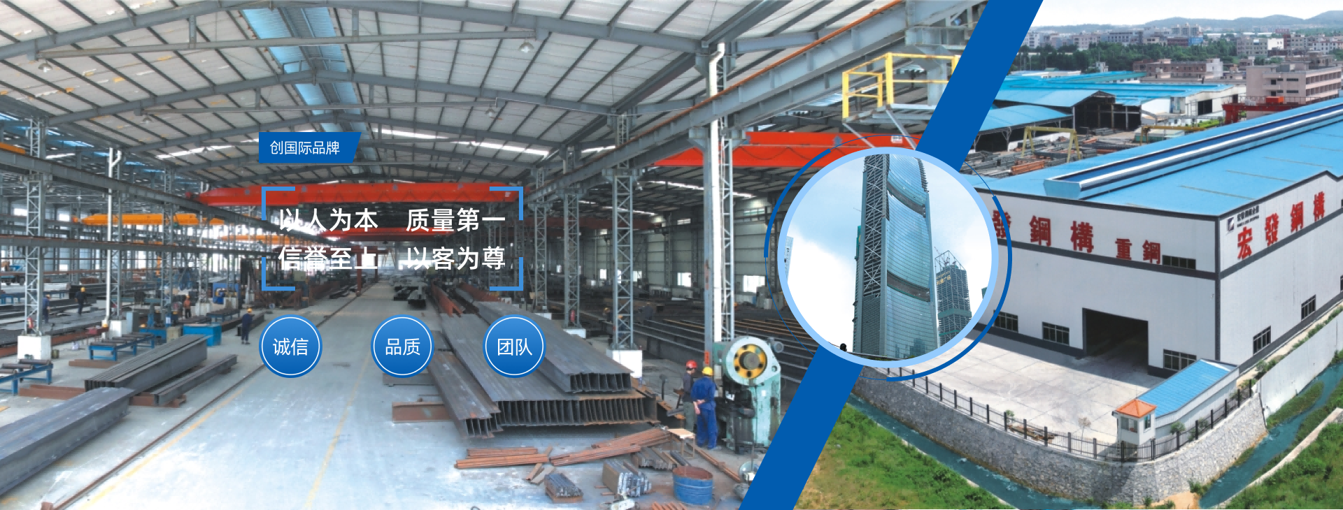 宏發鋼鐵企業是目前華南地區鋼鐵企業中最具規模的龍頭 企業之一,集團總部位于東莞市東部工業園。主營業務:建筑類 鋼結構產品的生產、加工、銷售,包括型材、彩瓦、夾芯板等圍 護系統;工業用金屬板材的專業分條及剪切,包括冷板、電解板、 鍍鋅板等。  公司從1993年成立至今,經過二十多年的蓬勃發展,集團旗 下已擁有:東莞市宏發鋼鐵結構材料有限公司、廣東宏泰重工鋼 結構有限公司(擁有國內外先進鋼結構生產設備、專業加工大型 箱型、橋梁、門式鋼結構以及圍護系統,年生產能力二十萬余 噸。);東莞市宏順金屬材料有限公司(專業分條及裁切各種電 子五金加工用金屬板材,研發生產高端組合建筑系列產品。); 東莞市宏駿鋼鐵貿易有限公司(型鋼、型材等銷售,各種工業、 建筑業鋼材的進出口貿易業務。);廣東宏鋼建設工程有限公司 (工程承包);佛山莞順工廠(圍護系統);(香港)宏發鋼鐵 有限公司;(新加坡)宏發鋼鐵有限公司。